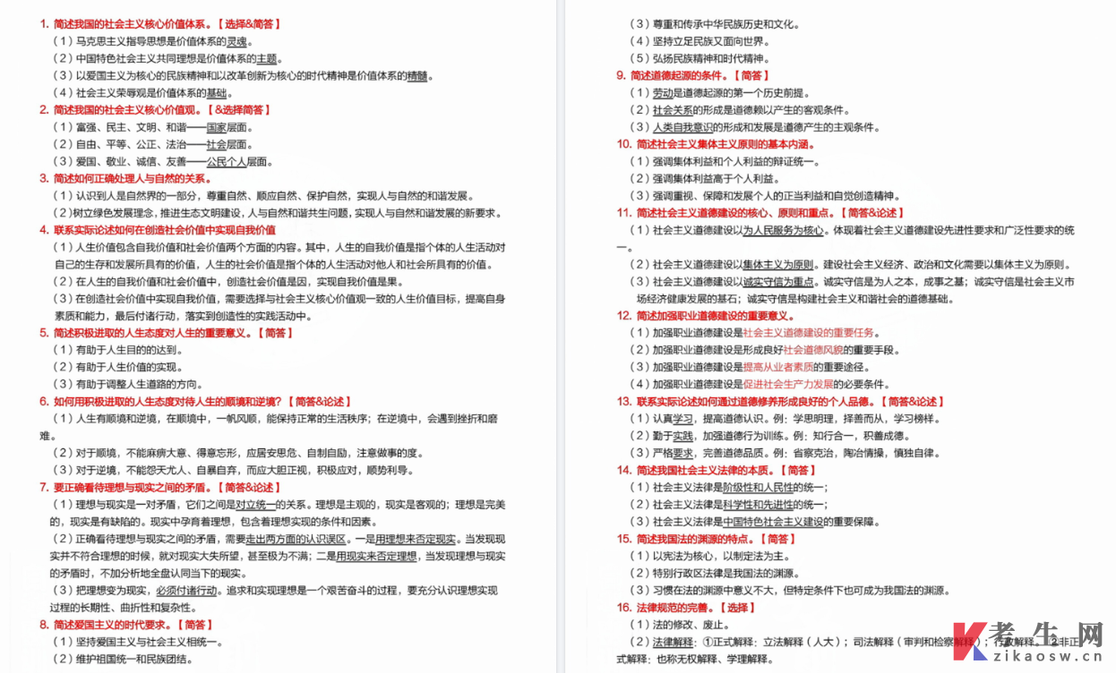 【自考复习资料】15042思想道德与法治(考前60分 )