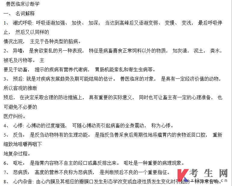 【复习资料】14243兽医内科学与兽医临床诊断学(知识点)