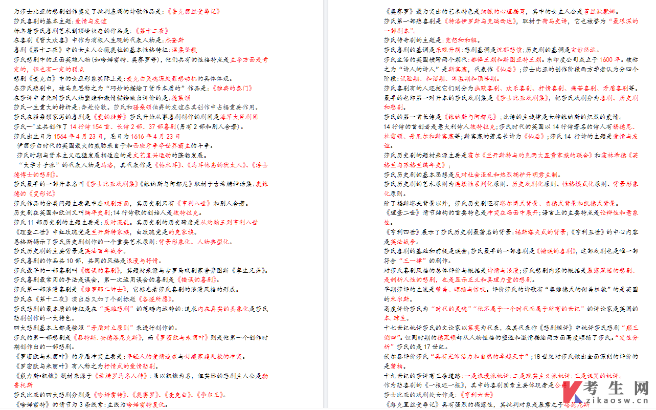 【复习资料】10856莎士比亚研究(笔记资料)